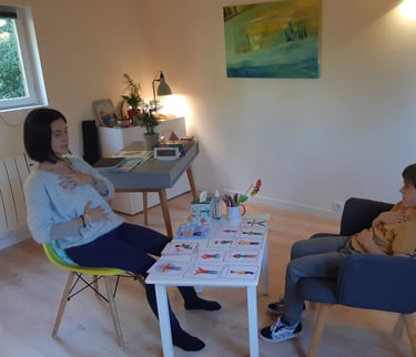 Je vous accueille dans mon cabinet en séance individuelle adulte ou enfant et en petit groupe aussi pour les enfants.