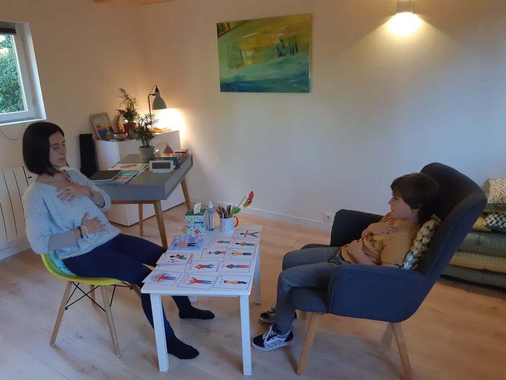 Je vous accueille dans mon cabinet en séance individuelle adulte ou enfant et en petit groupe aussi pour les enfants.
